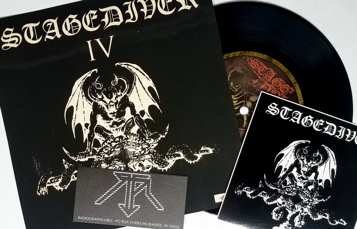 Part four of a four-part series - Stagediver IV once again takes undead, "trailing-edge" technology to brand new heights. The A-side skirts through an industrial landscape where air sirens transform into deep melodies, while the B-side absolutely slams through a dark march of lo-fi speedcore.